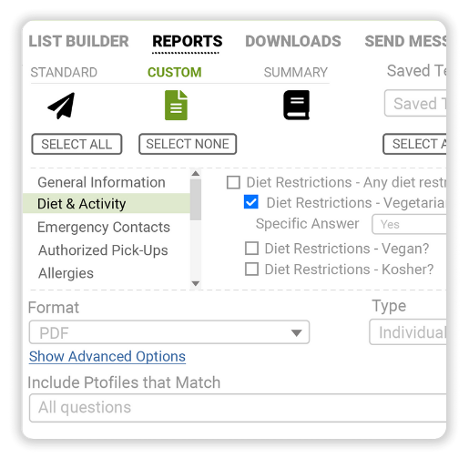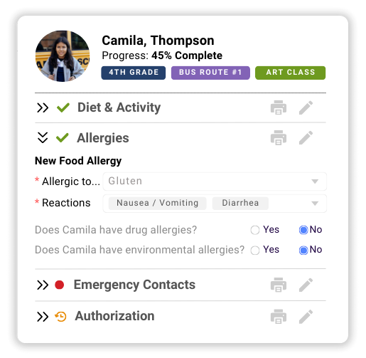 Parents can select allergies from a pre-built database and upload immunization records with a quick scan—all before the season begins. Camp nurses can easily generate reports and stay organized for a safe, compliant camp season.